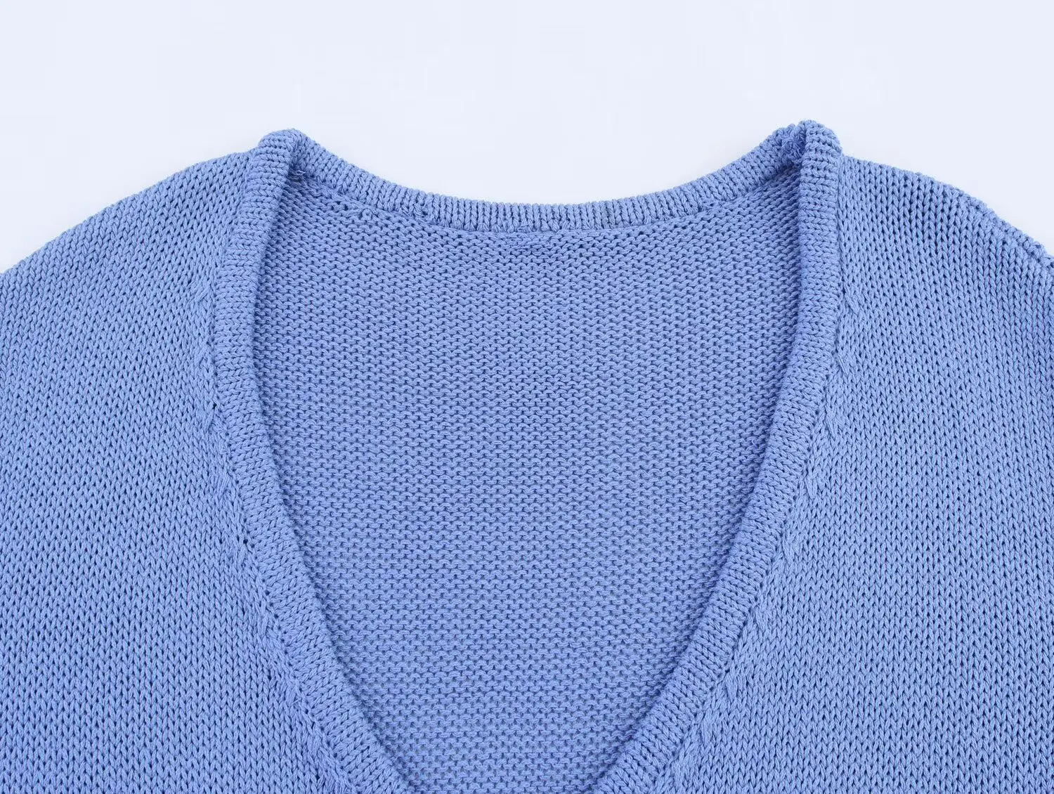 European and American style Summer new products Women's clothing All-match V-neck long-sleeved casual knitted jacket