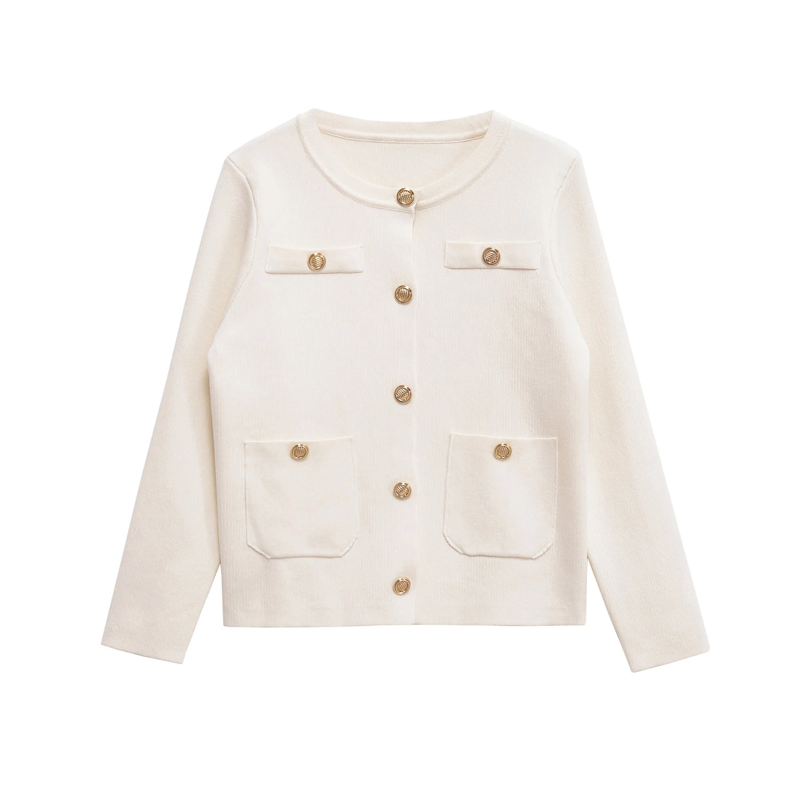 European and American style summer new products Women's clothing Simple round neck long sleeve versatile knitted jacket