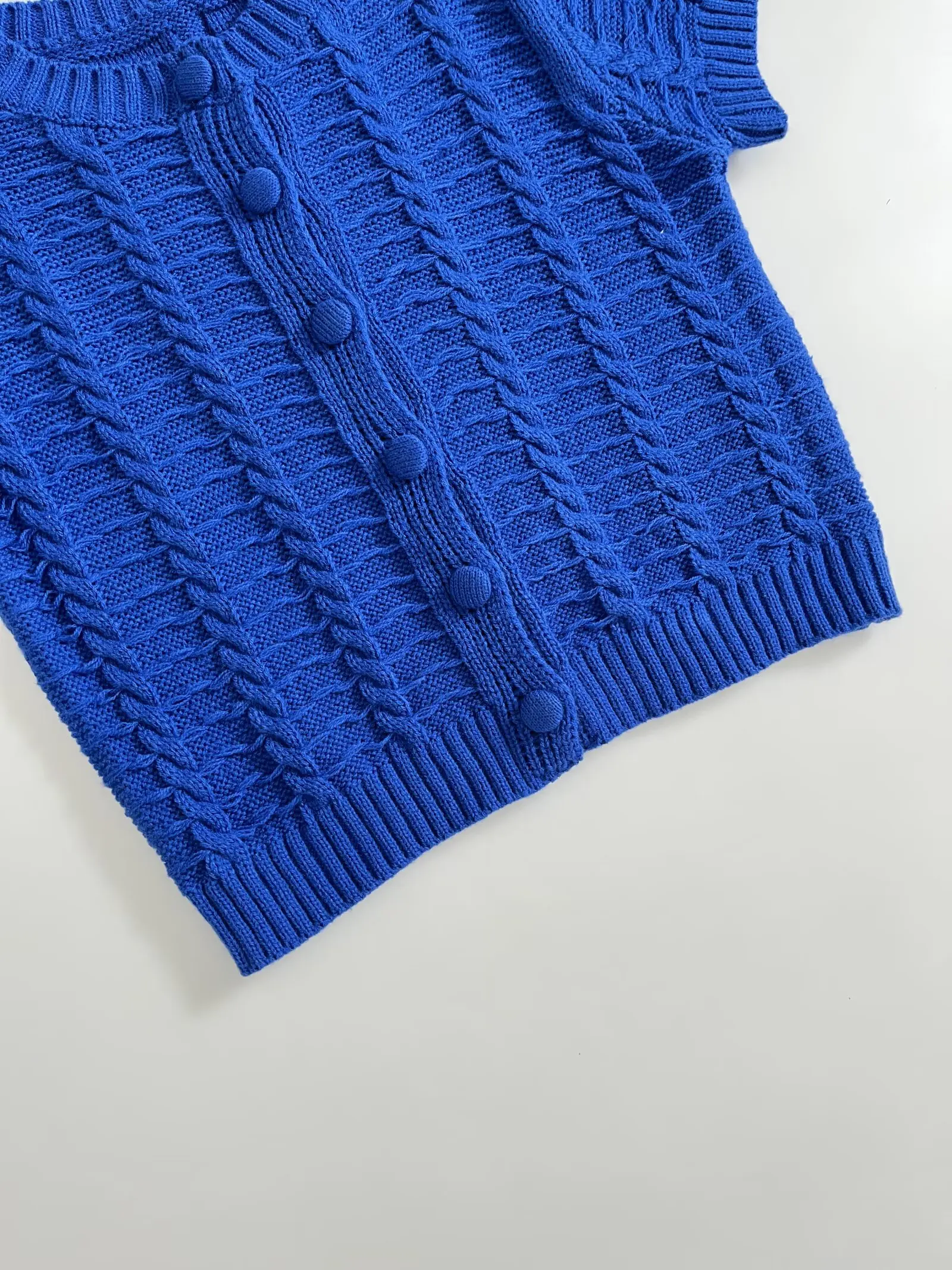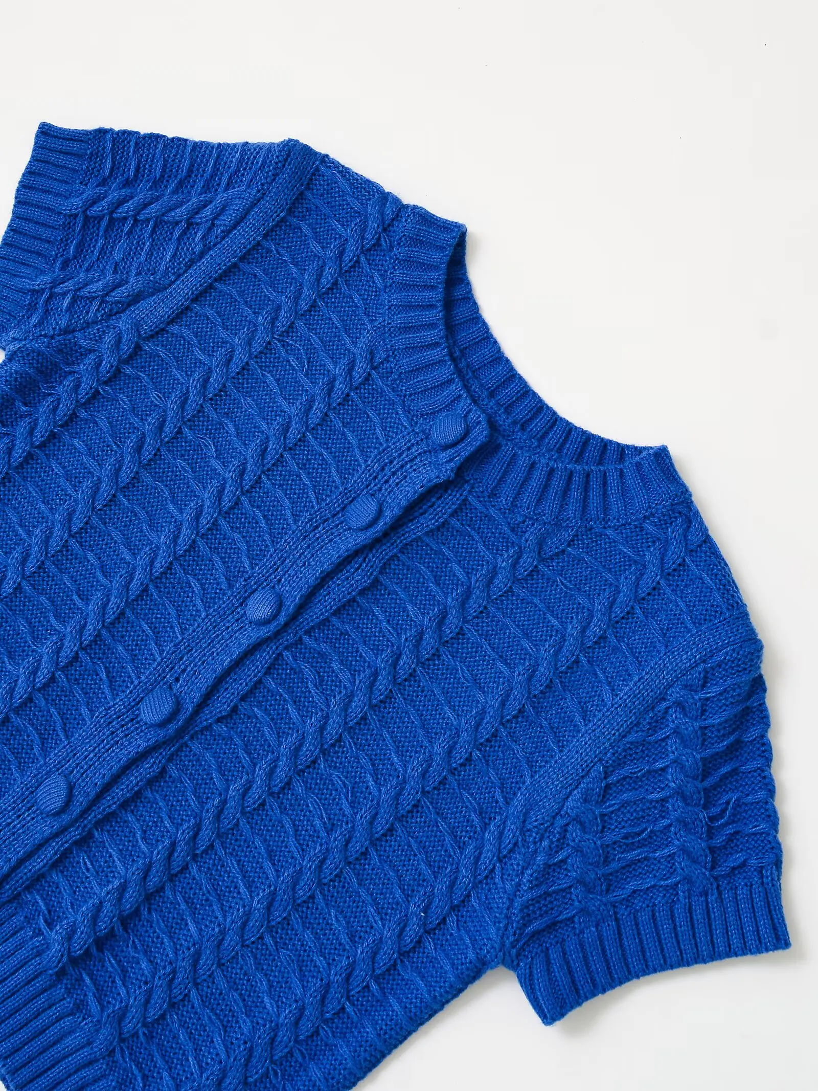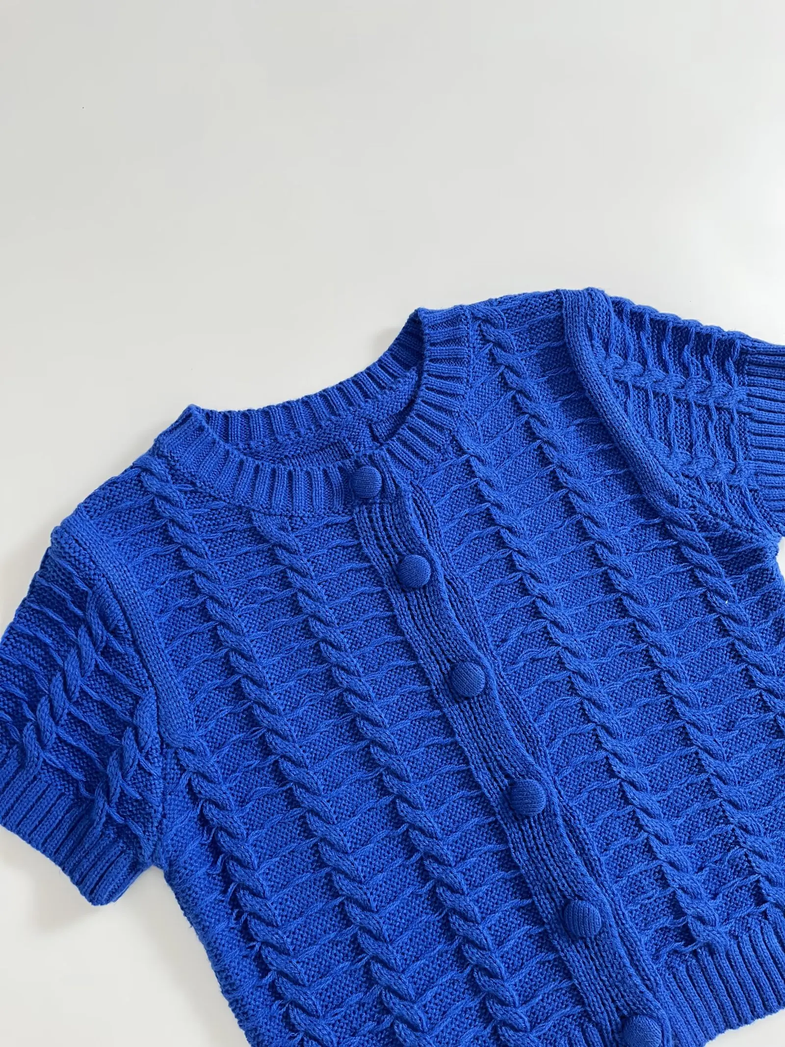 European and American style summer new products Women's clothing Simple round neck short sleeve embossed knitted jacket