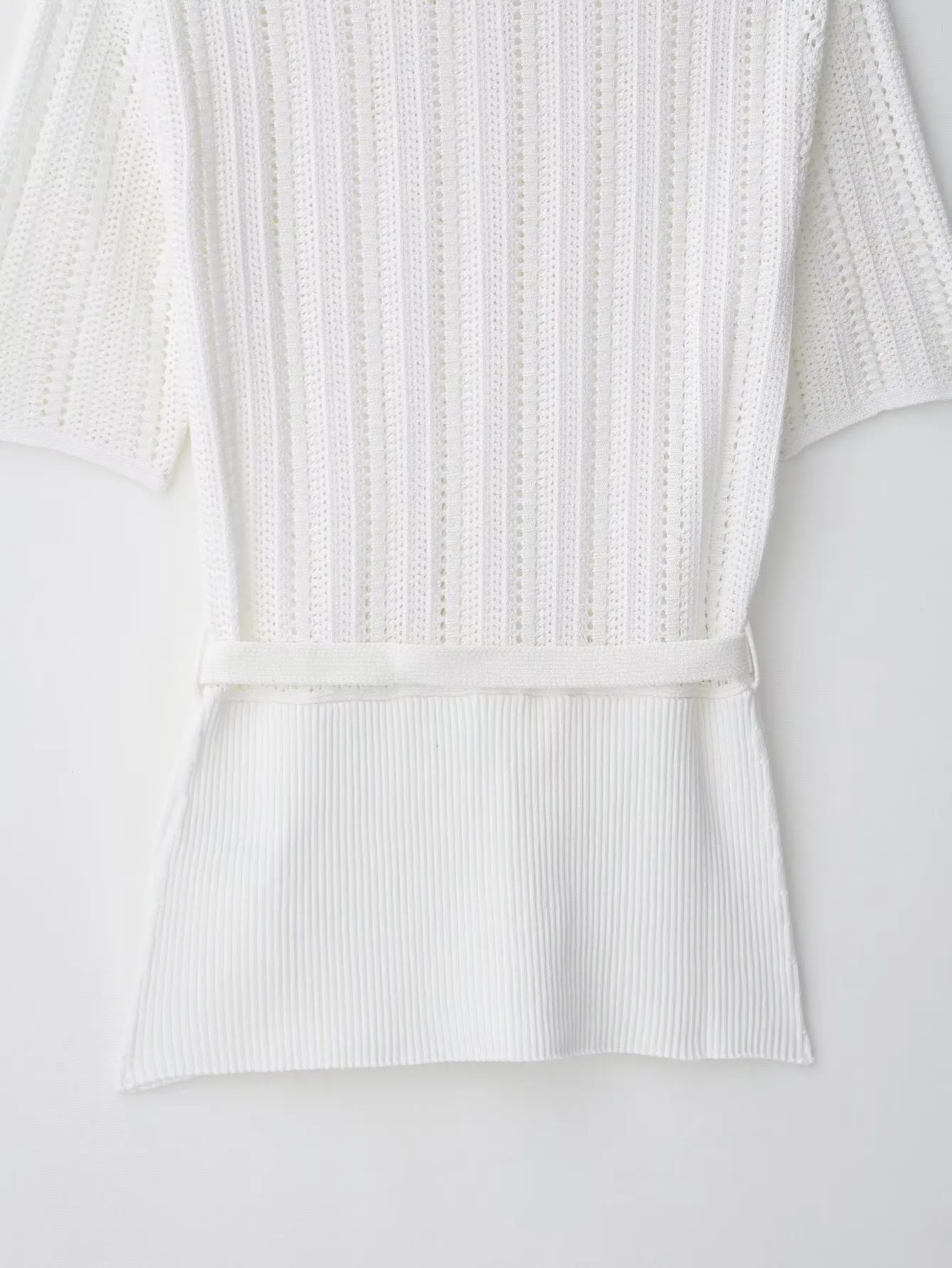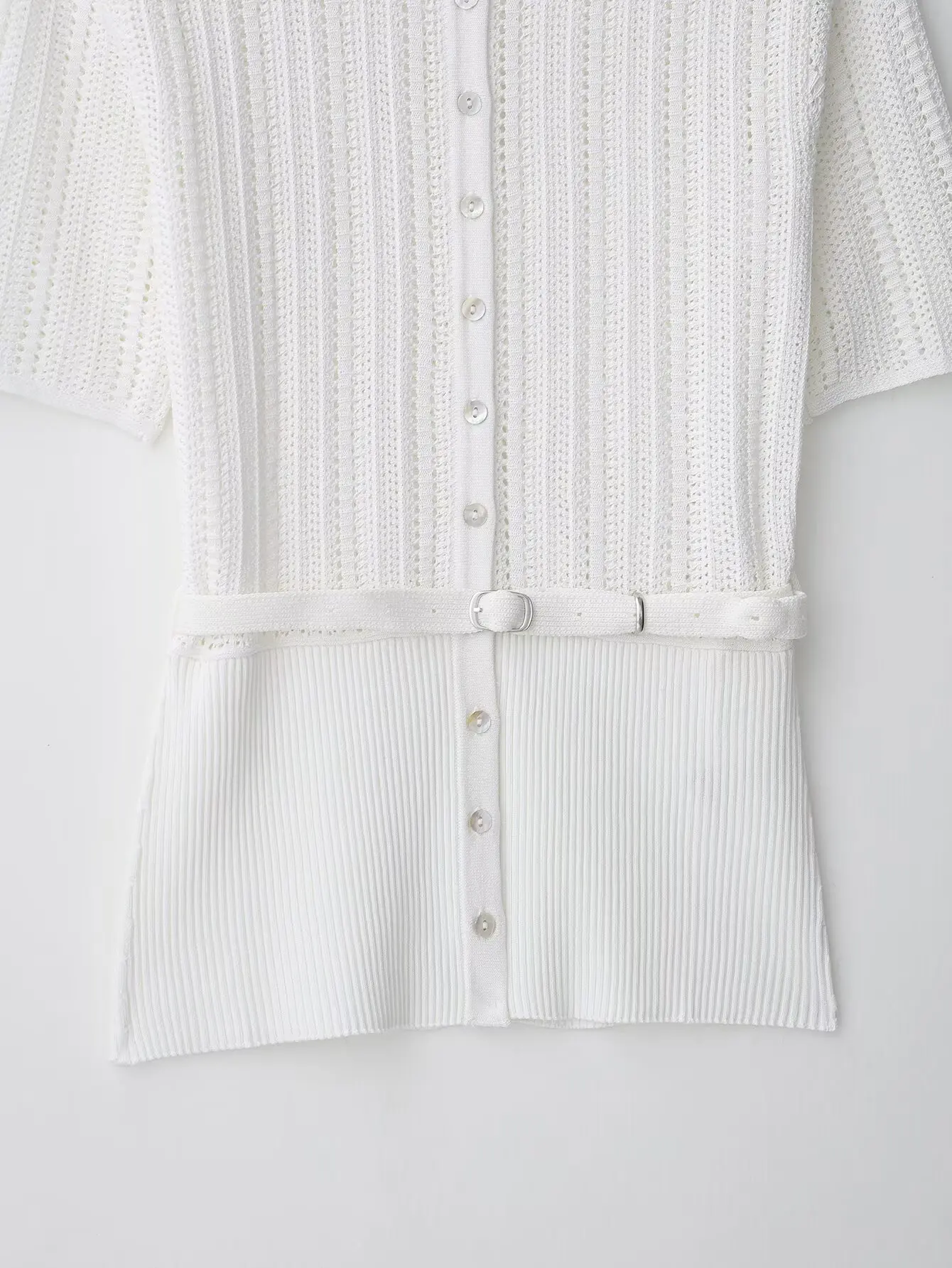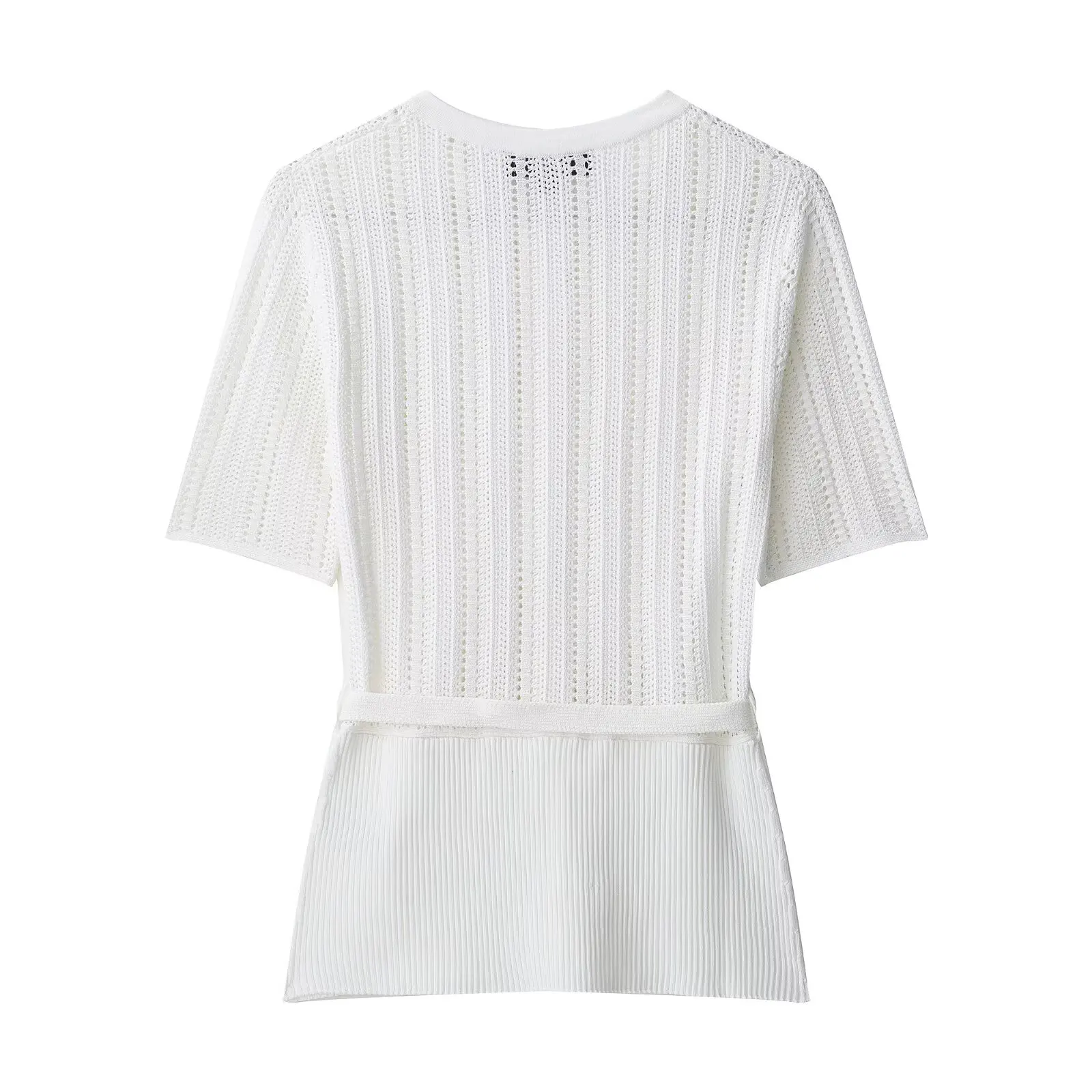 European and American style summer new women's clothing fashionable and versatile belt jacquard mesh knitted casual jacket