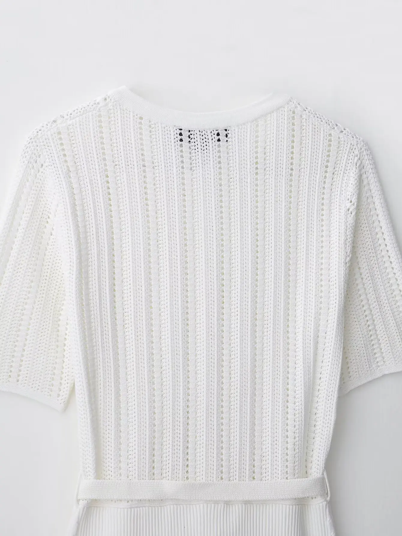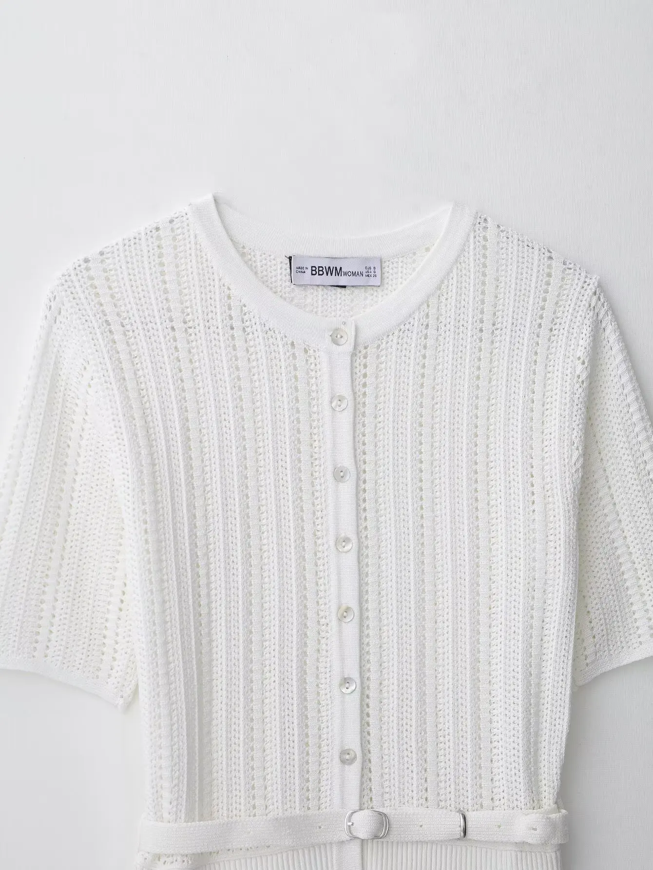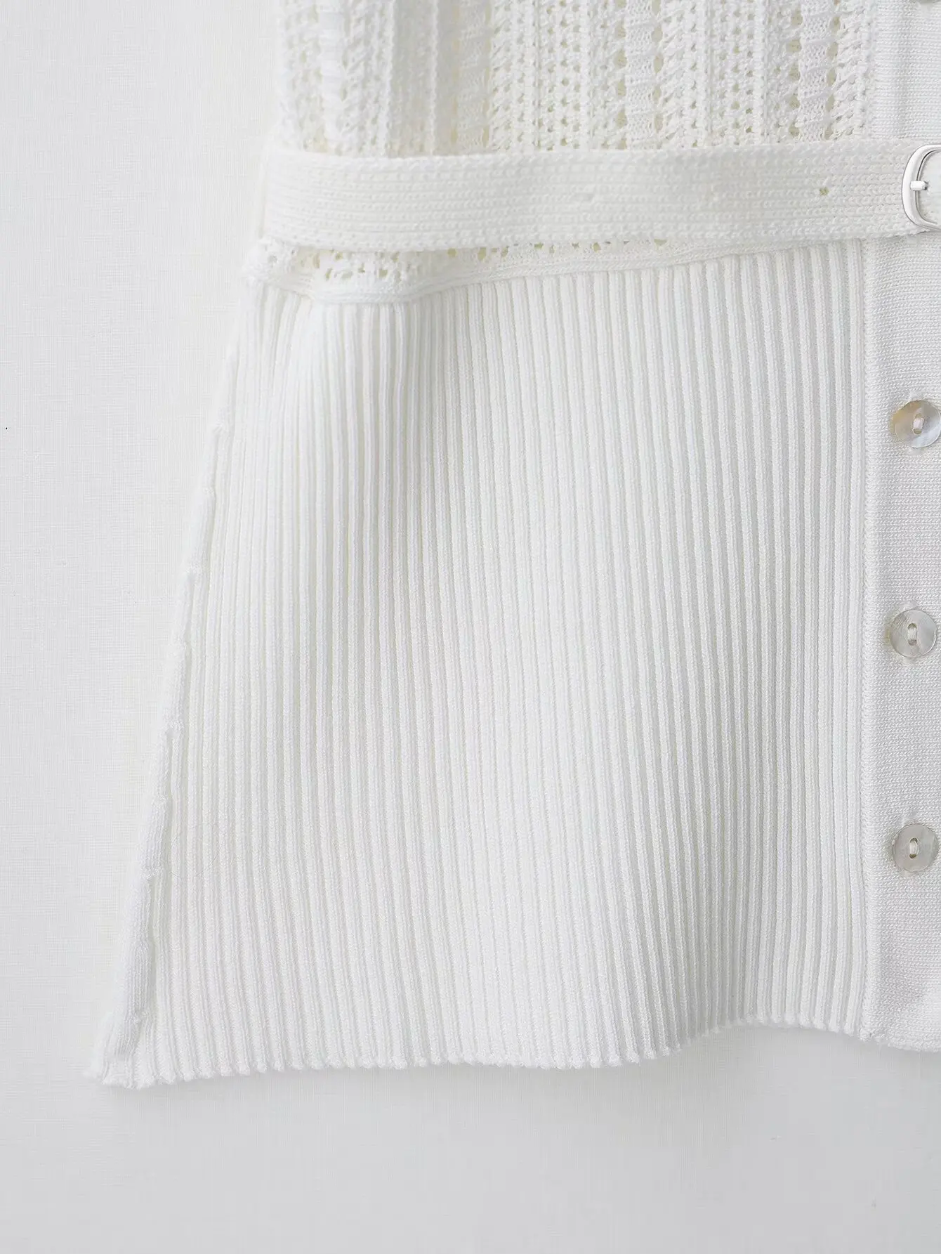 European and American style summer new women's clothing fashionable and versatile belt jacquard mesh knitted casual jacket