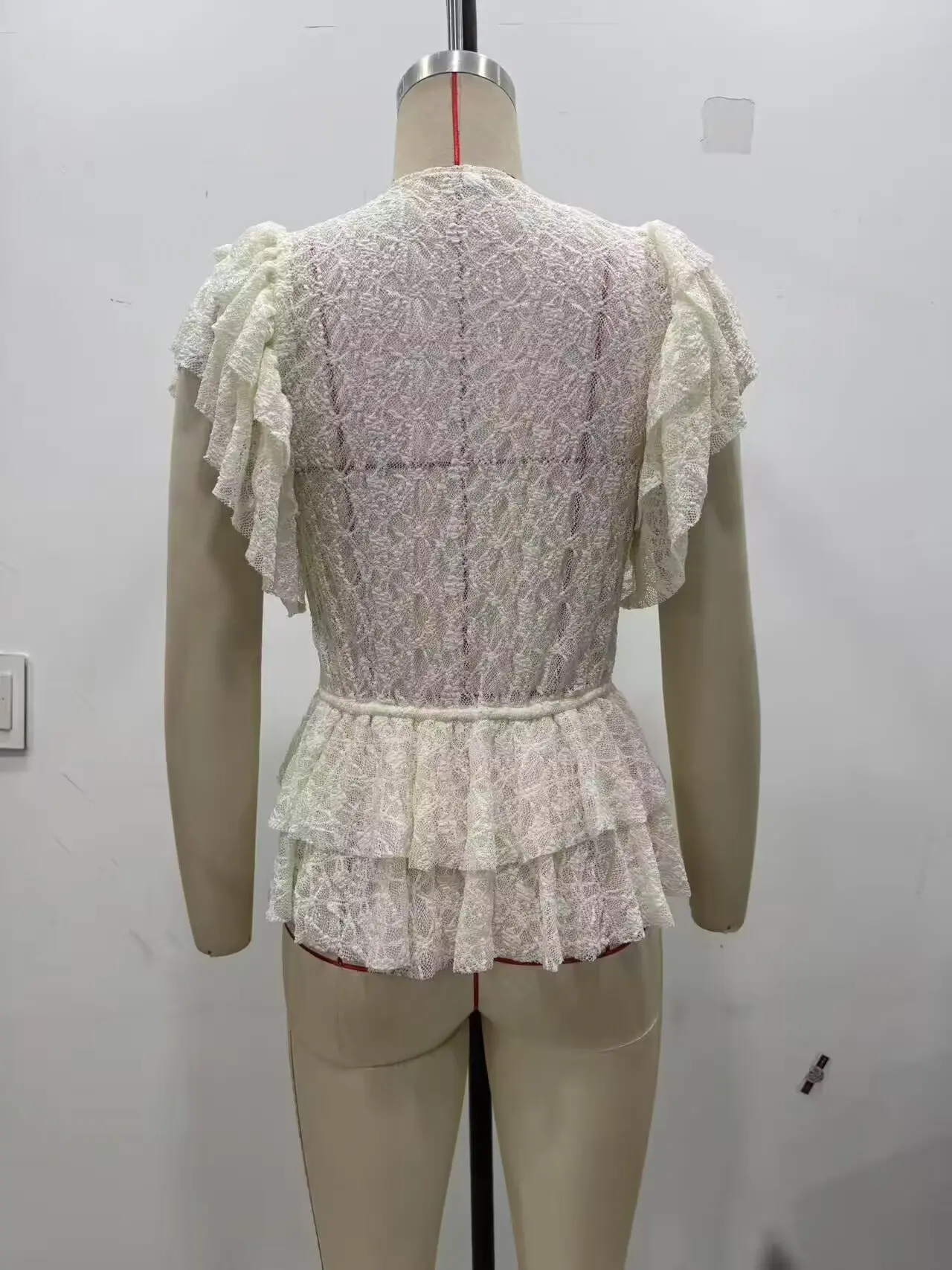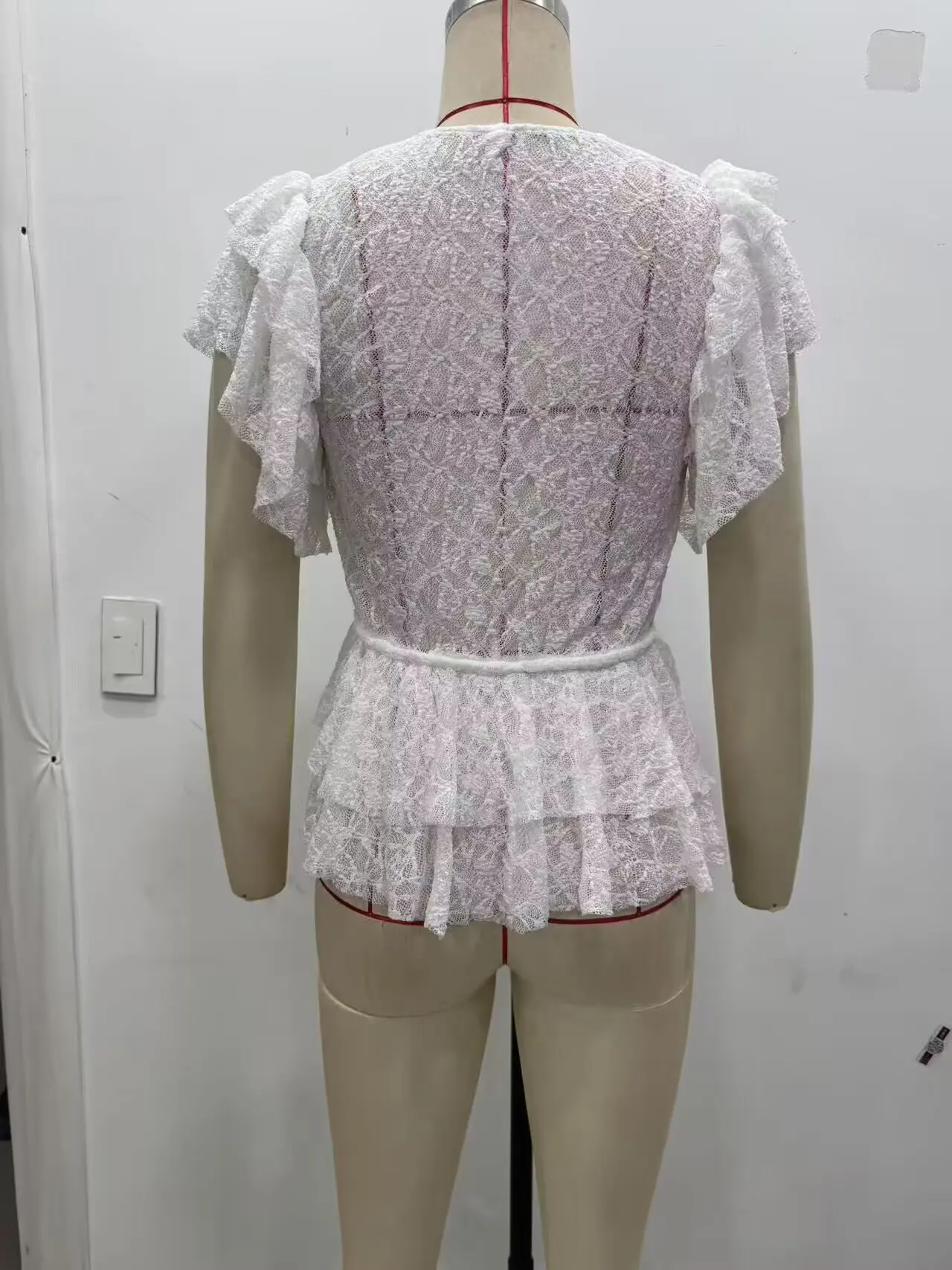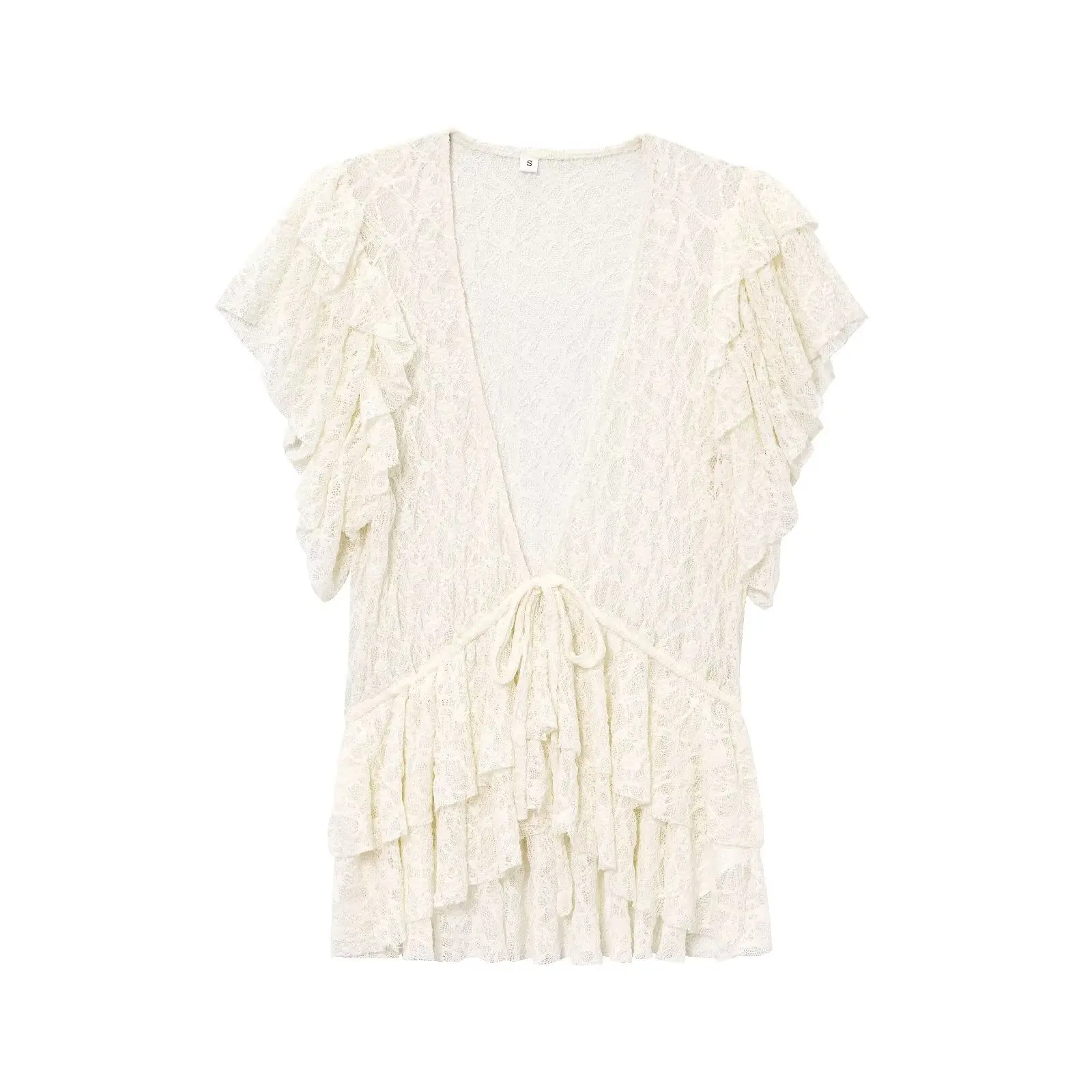 Spring and summer new arrival women's clothing sweet style layered decorative bow lace V-neck short-sleeved jacket