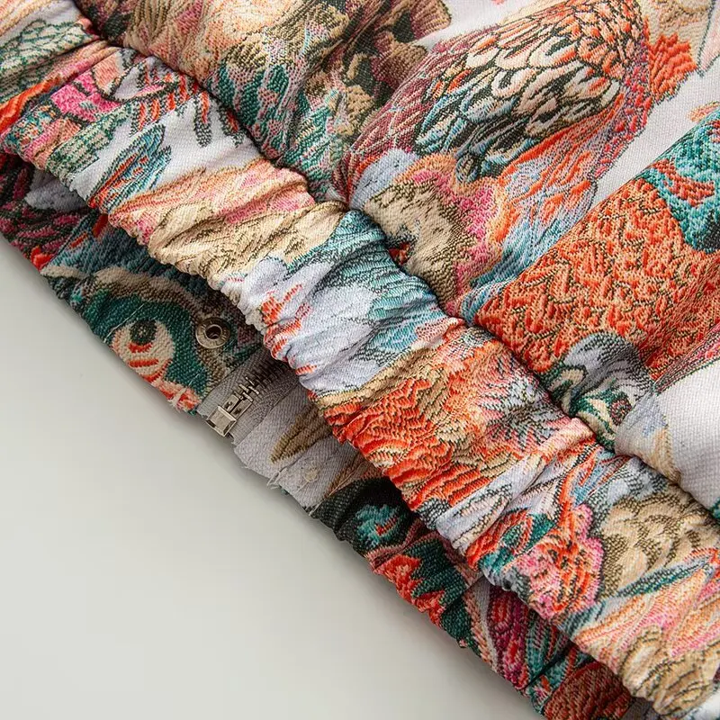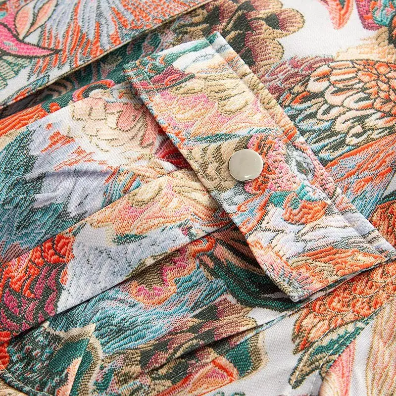 Street style autumn and winter new women's casual versatile stand-up collar long sleeve peacock print zipper jacket short coat