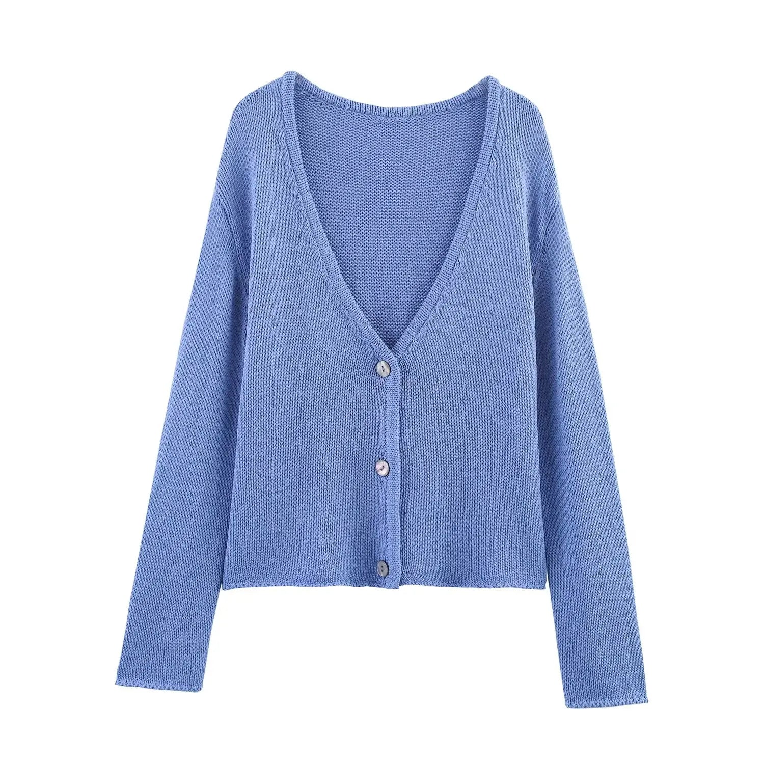 European and American style Summer new products Women's clothing All-match V-neck long-sleeved casual knitted jacket
