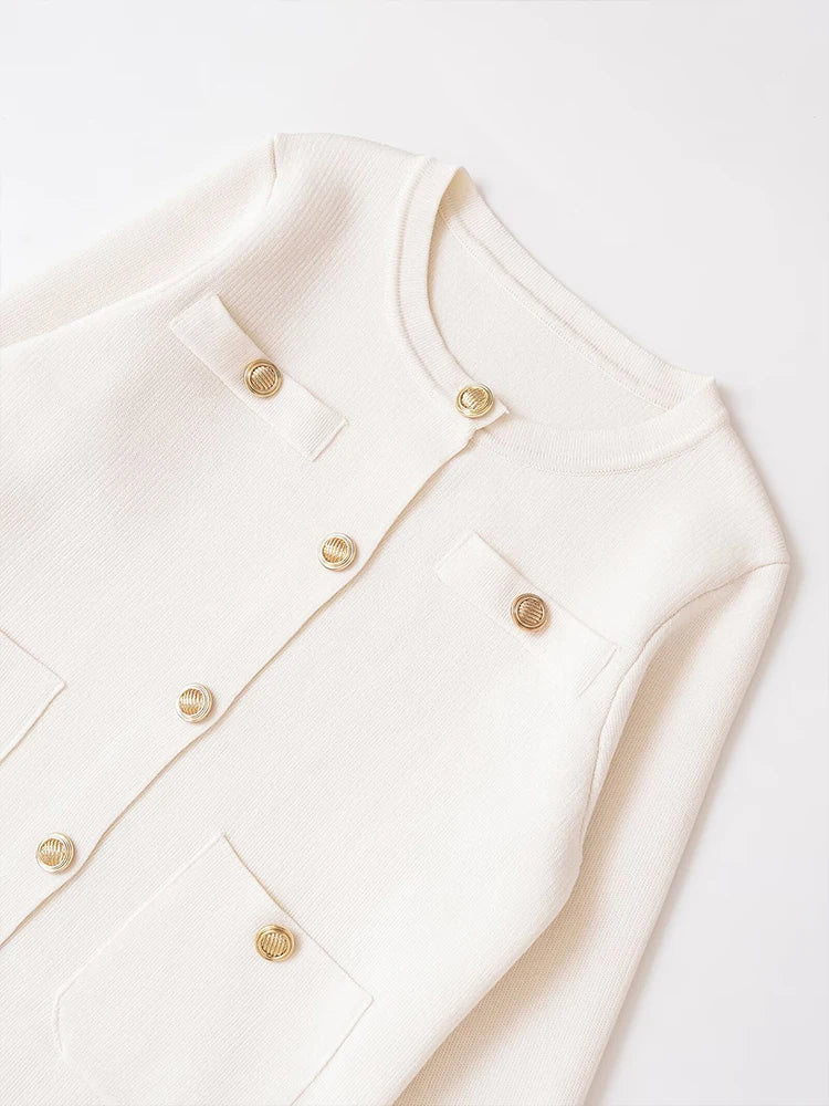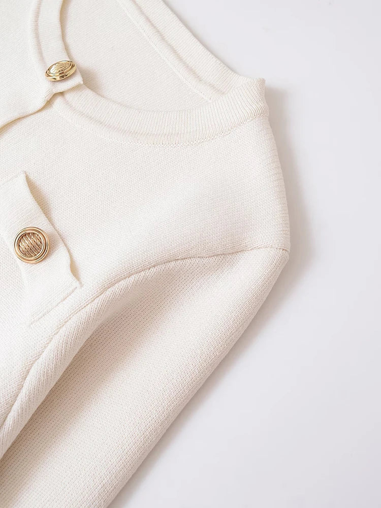 European and American style summer new products Women's clothing Simple round neck long sleeve versatile knitted jacket