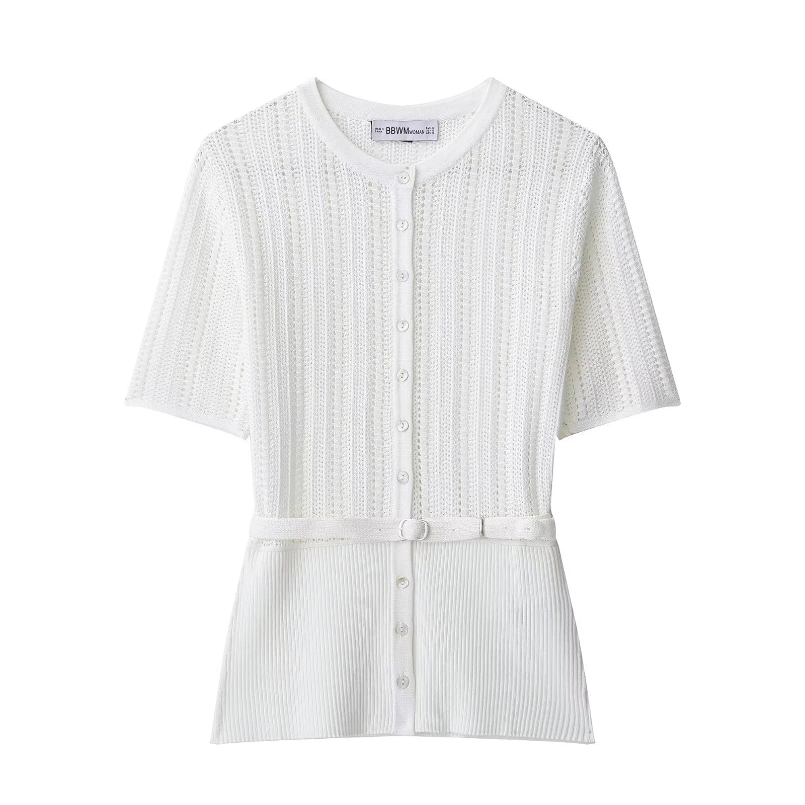 European and American style summer new women's clothing fashionable and versatile belt jacquard mesh knitted casual jacket