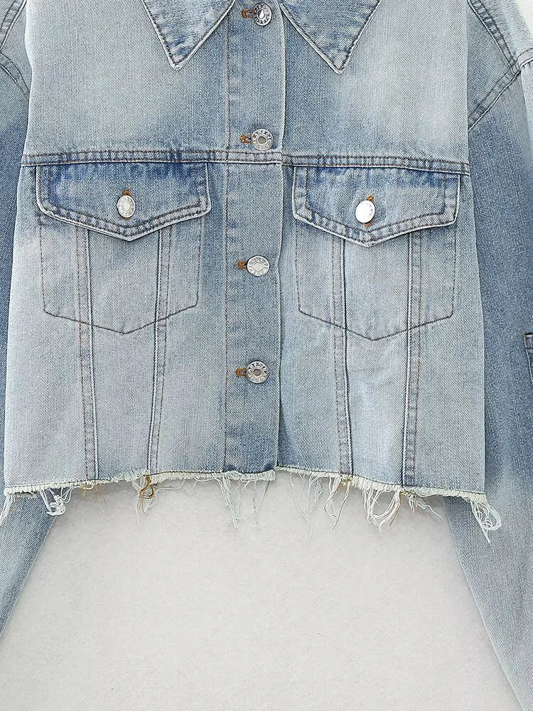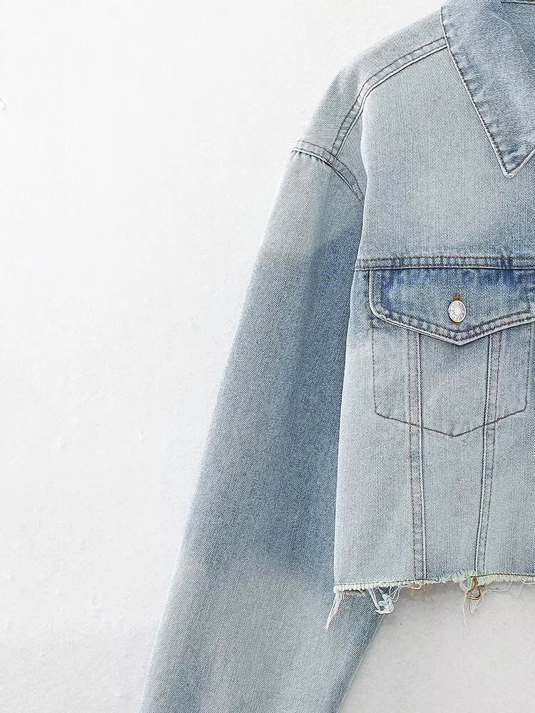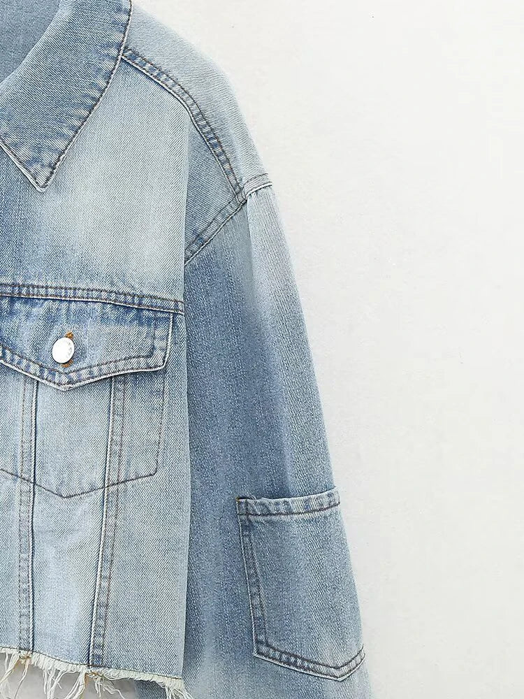 European and American style women's clothing Spring new style Fashionable and versatile casual lapel denim jacket