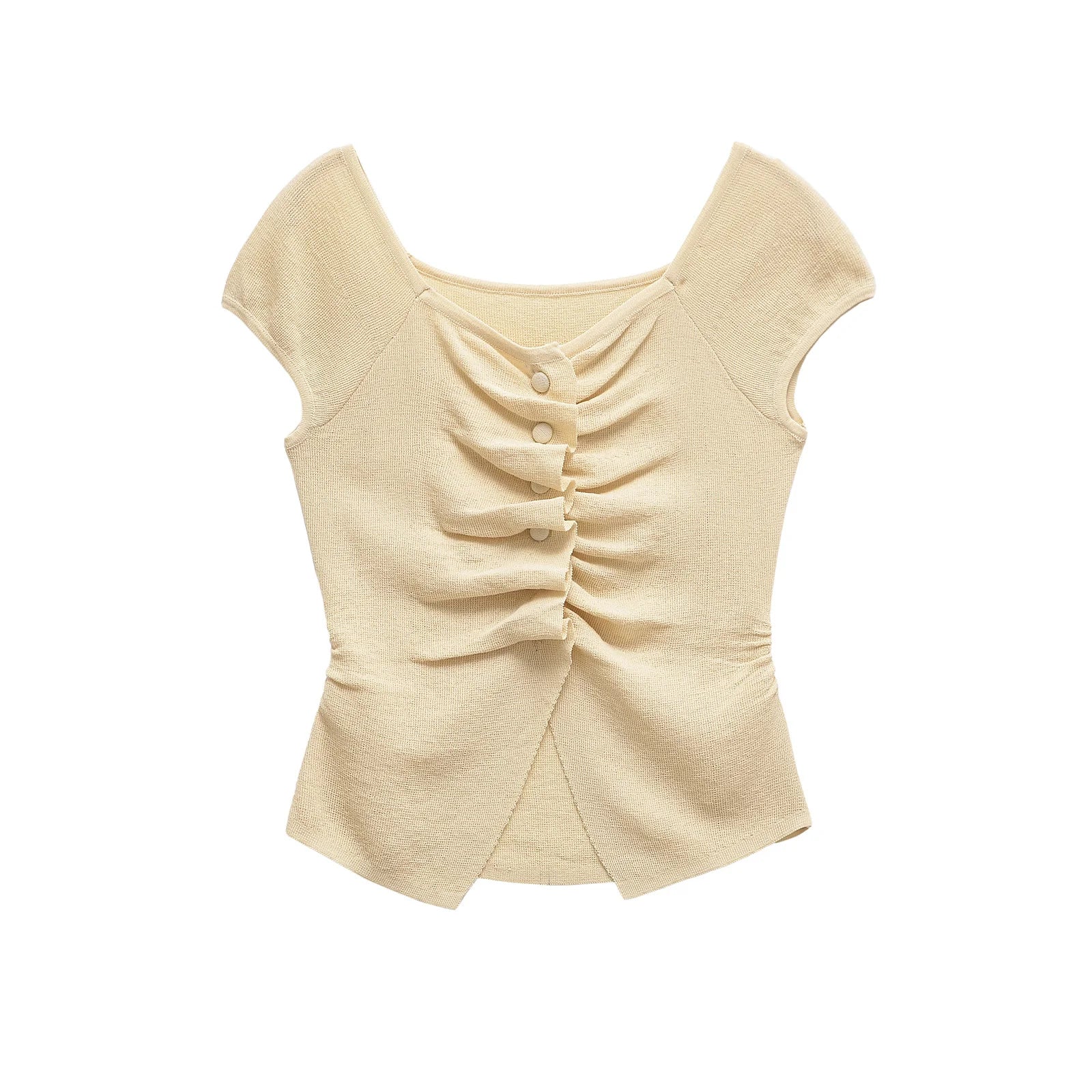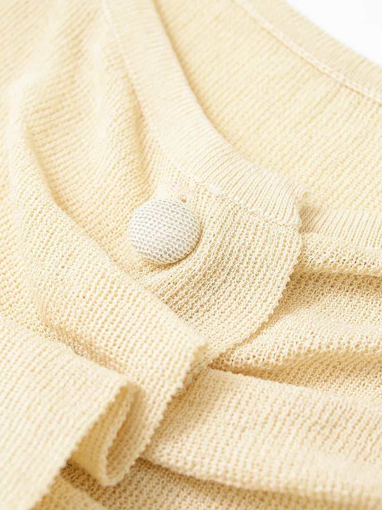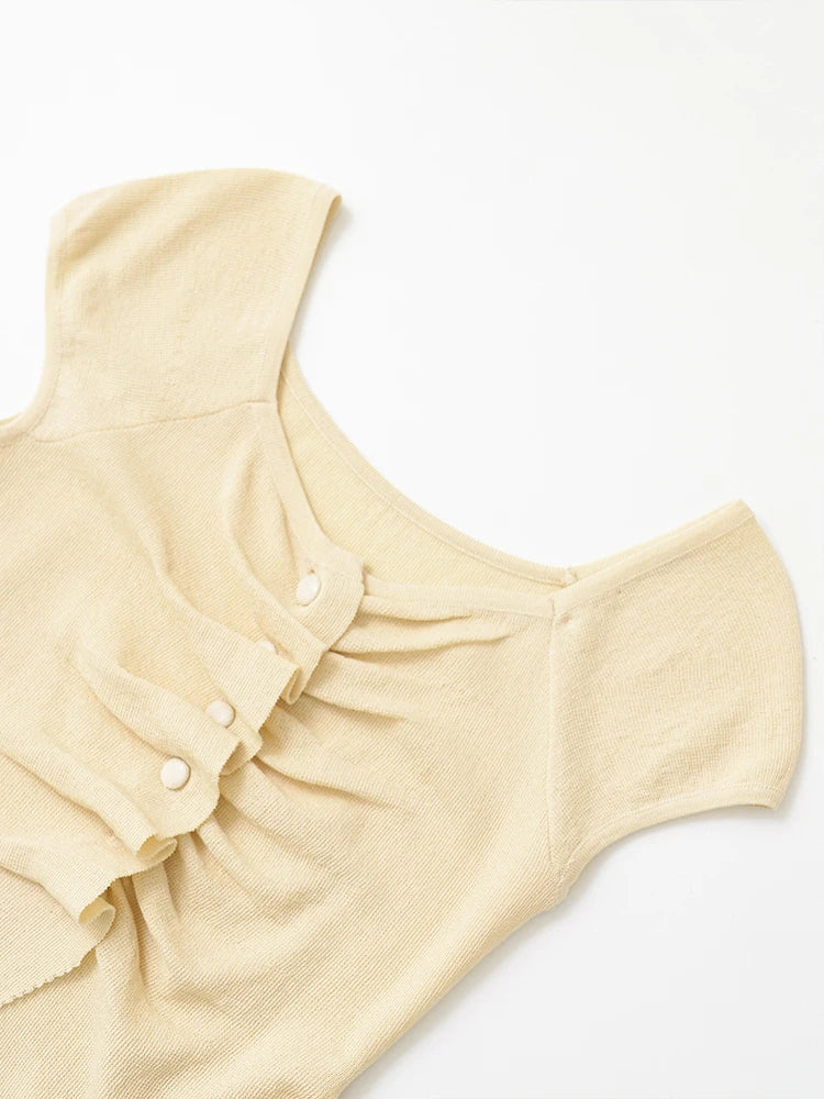 European and American style women's clothing spring new style fashionable simple pleated decorative knitted top