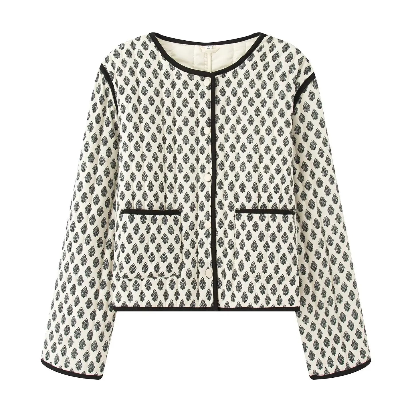 New European and American style women's clothing, fashionable and versatile daily wear, floral quilted cotton jacket
