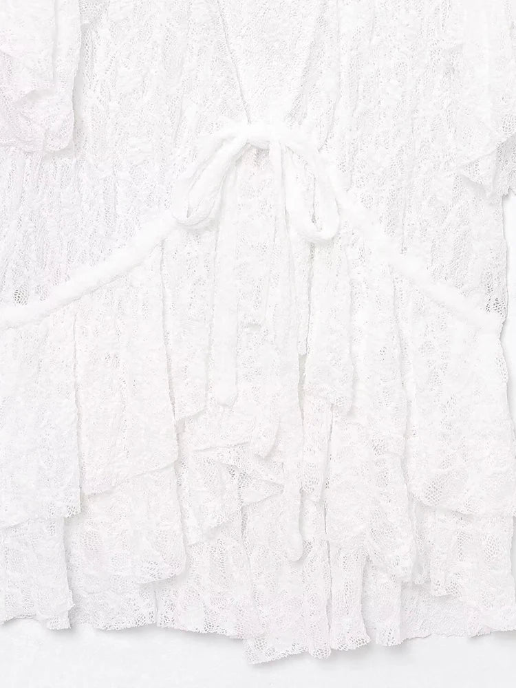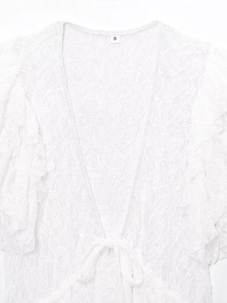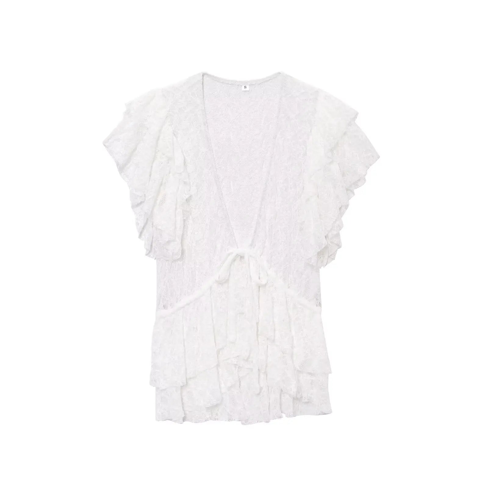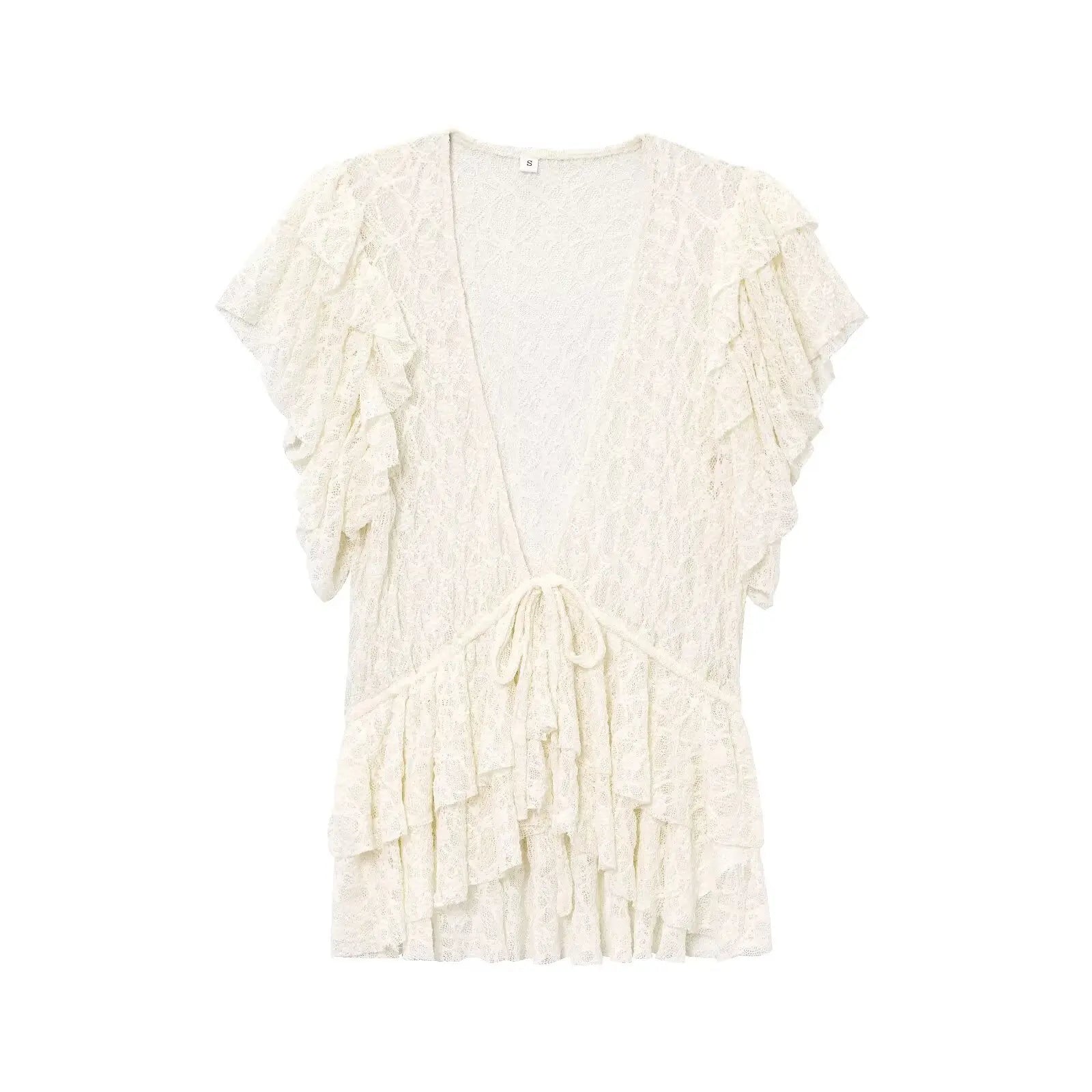 Spring and summer new arrival women's clothing sweet style layered decorative bow lace V-neck short-sleeved jacket