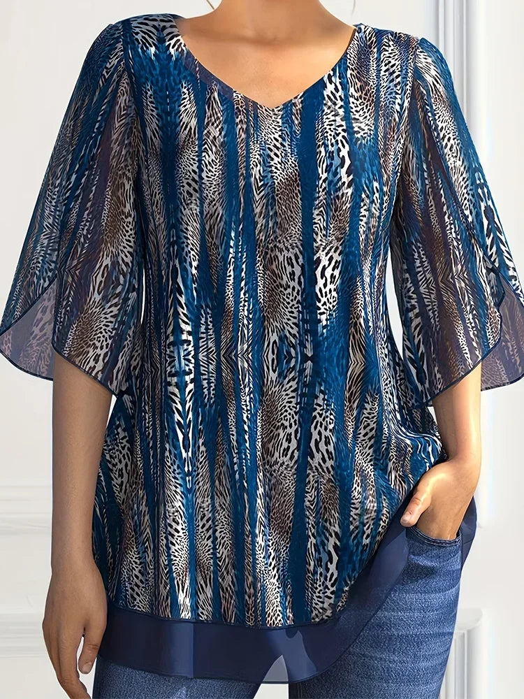 Summer Casual Short Sleeve Women Blouse Plus Size Blouses V-Neck Loose Chiffon Tops New Fashion T Shirts Women's Clothing